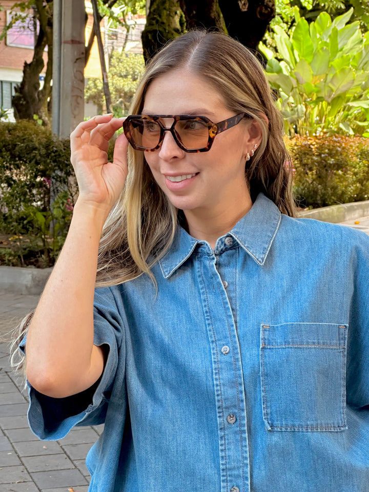 Gafas en policarbonato con lente claro marron y filtro UV400 y estuche hermetico