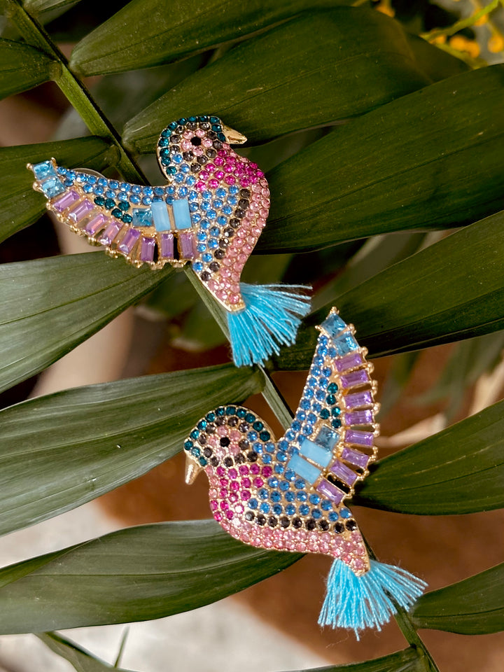 Hermosos aretes en imitación piedras con diseño de colibrí